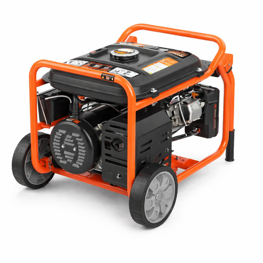 Усиленная металлическая рама, колеса и складные ручки делают генератор удобным для транспортировки и ежедневного использования.